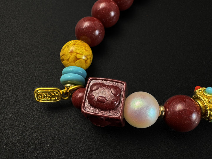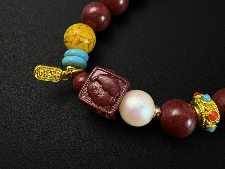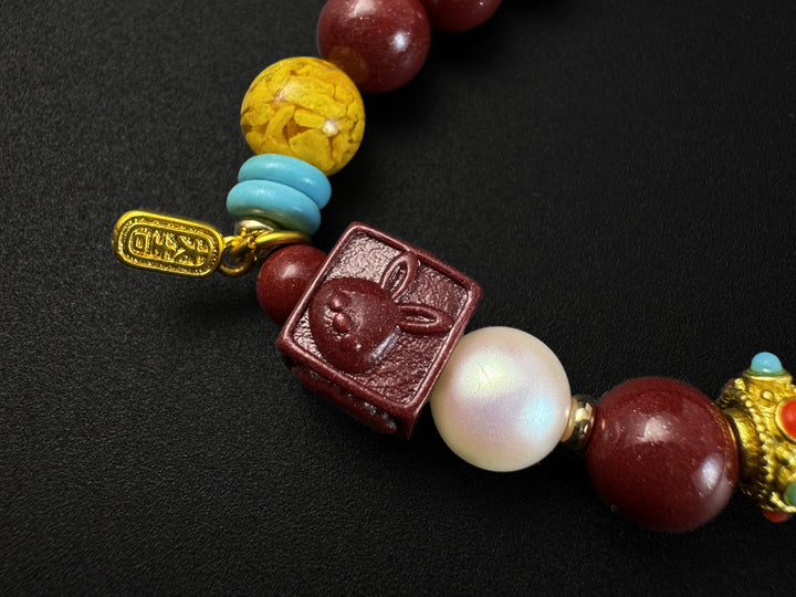 Tibetan-inspired Zodiac Patterns Cinnabar Bracelet - Pig & Rabbit & Goat