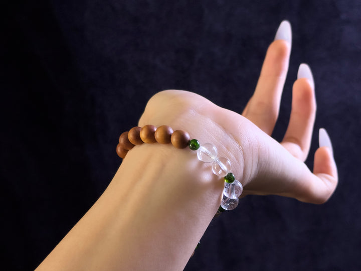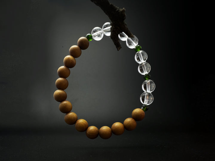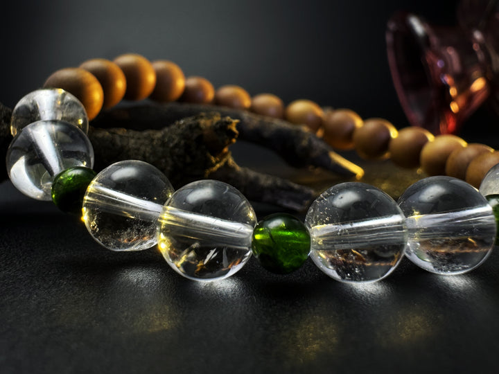 Material: Clear Quartz, Green Aventurine Quartz, Sandalwood